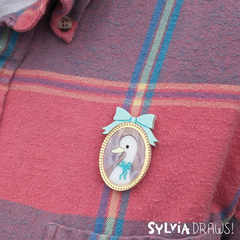 This darling little goose brooch is ready to adorn your favorite jacket or bag! Features two posts on the backside with purple rubber closures to provide extra security and ensure the brooch doesn’t spin.