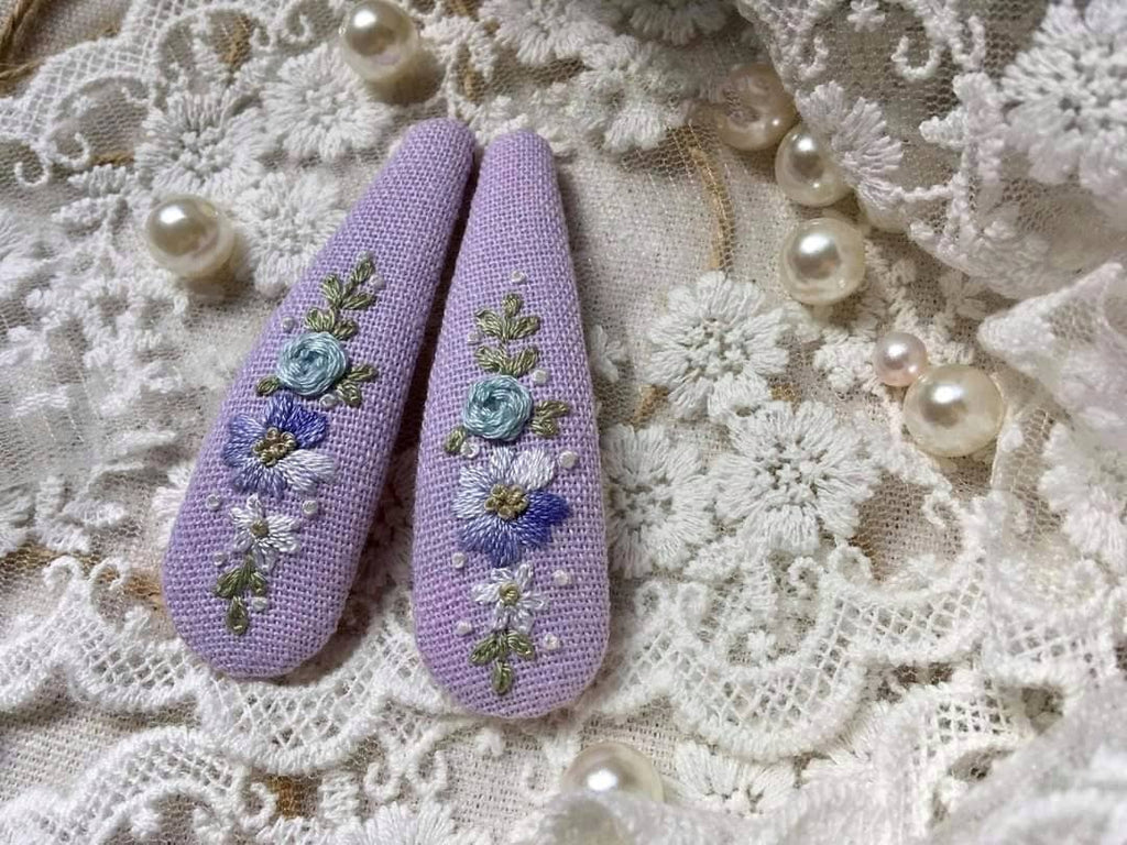 Floral Hand Embroidered Hair Clip ★ ABOUT • Each hair clip is hand embroidered on sturdy stainless steel clip. • These adorable, trendy and feminine snap clips are the perfect back to school hair clips or any other occasions: go to walk, picnic. These bow hair clips will complete any outfit and make for a great gift. You can use them for holding bangs back. • Size: 2.7" ★ CARE: • Wash: Fill a clean glass with cool water and add a drop of mild laundry detergent. Let the clip soak for 5 mins. Remove the clip and wash with cool water. • Use a clean towel to pat down the clip. Set it on a towel to dry