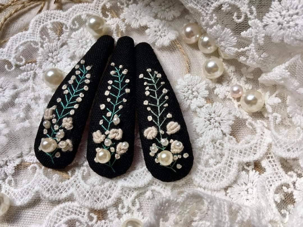 Floral Hand Embroidered Hair Clip ★ ABOUT • Each hair clip is hand embroidered on sturdy stainless steel clip. • These adorable, trendy and feminine snap clips are the perfect back to school hair clips or any other occasions: go to walk, picnic. These bow hair clips will complete any outfit and make for a great gift. You can use them for holding bangs back. • Size: 2.7" ★ CARE: • Wash: Fill a clean glass with cool water and add a drop of mild laundry detergent. Let the clip soak for 5 mins. Remove the clip and wash with cool water. • Use a clean towel to pat down the clip. Set it on a towel to dry