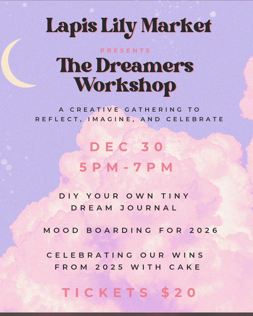 Close out the year with intention, creativity, and community at The Dreamers Workshop—a cozy, hands-on gathering for reflection and dreaming forward.